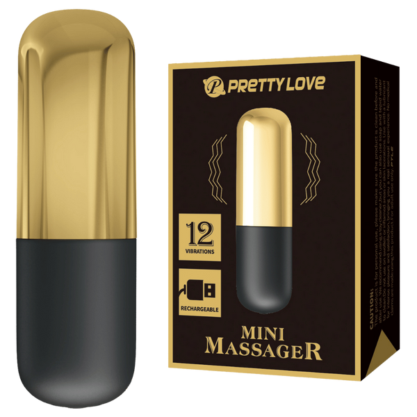 Compact rechargeable bullet vibrator with 12 vibration patterns. Gold-finished ABS design delivers intense external stimulation in a discreet pocket-sized format.