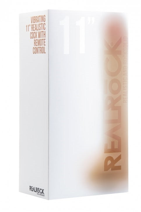 Realistic 11-inch vibrating dildo with dual-density silicone and ten vibration patterns. Remote-controlled with suction cup base and waterproof design.