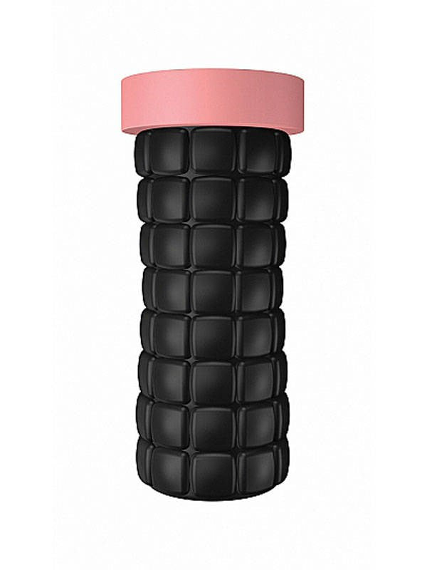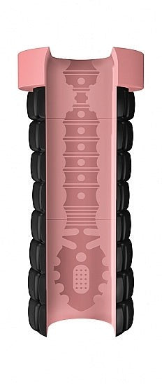 Silicone stroker with multiple textured chambers and narrow shaft grip. Waterproof masturbator for intense, varied sensations.
