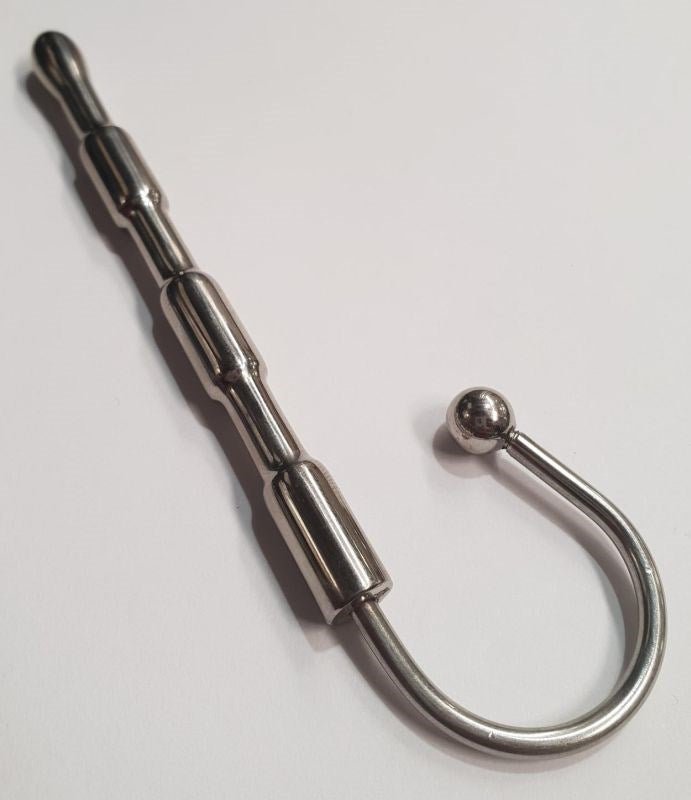 Explore new depths of pleasure with this medical-grade steel penis plug, designed for beginners with a ribbed shaft and secure hook.