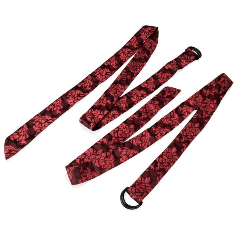 Furniture bondage restraint system with 60cm straps. Nickel-free metal construction for secure couple play without skin irritation.