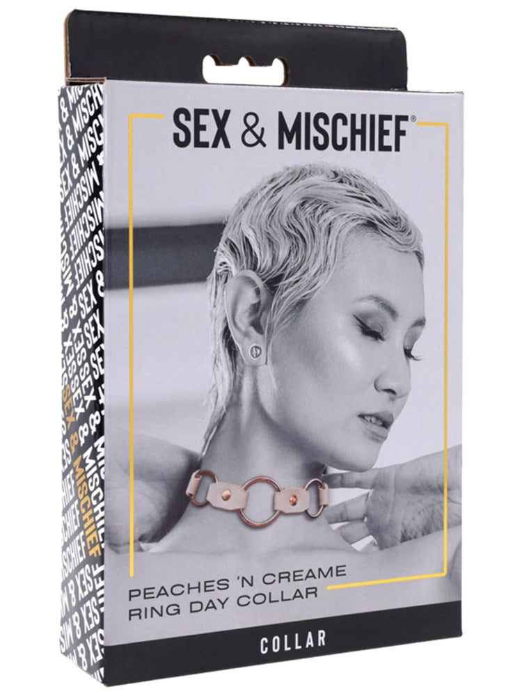 Luxury BDSM collar with three functional rose gold rings