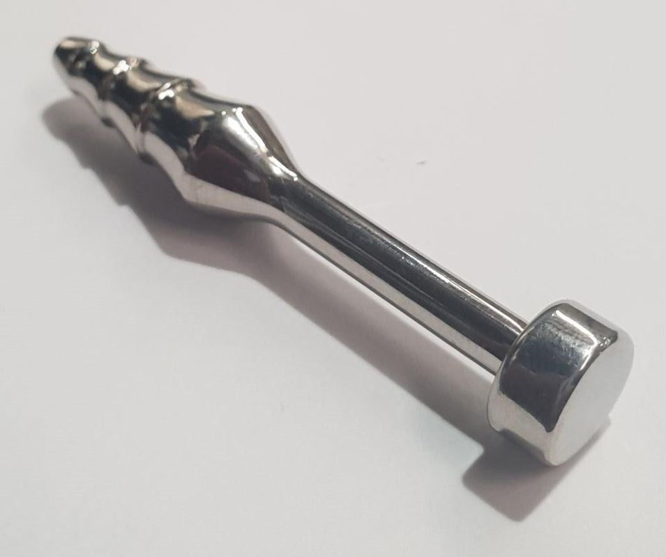 Experience precise stimulation with this surgical steel penis plug, featuring a ribbed, tapered design for enhanced sensation.