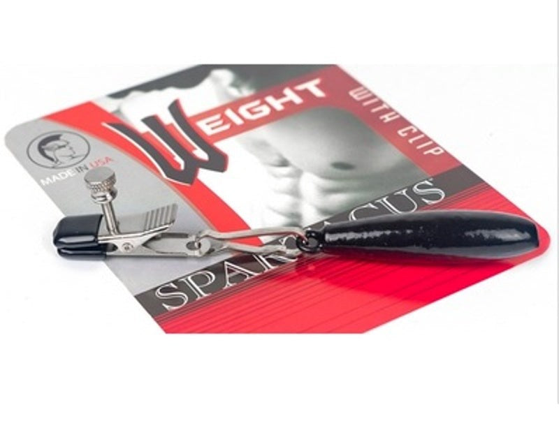 Spartacus stainless steel nipple clamp with adjustable tension and 1.5-ounce hanging weight for intense sensation.