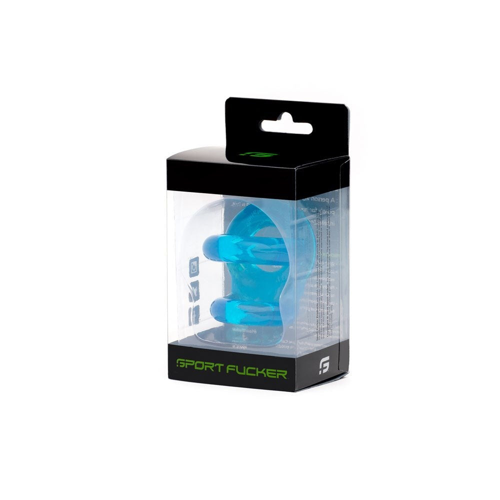 Super stretchy TPR cock and ball ring in Ice Blue. Multiple wear configurations for enhanced blood flow and extended performance.