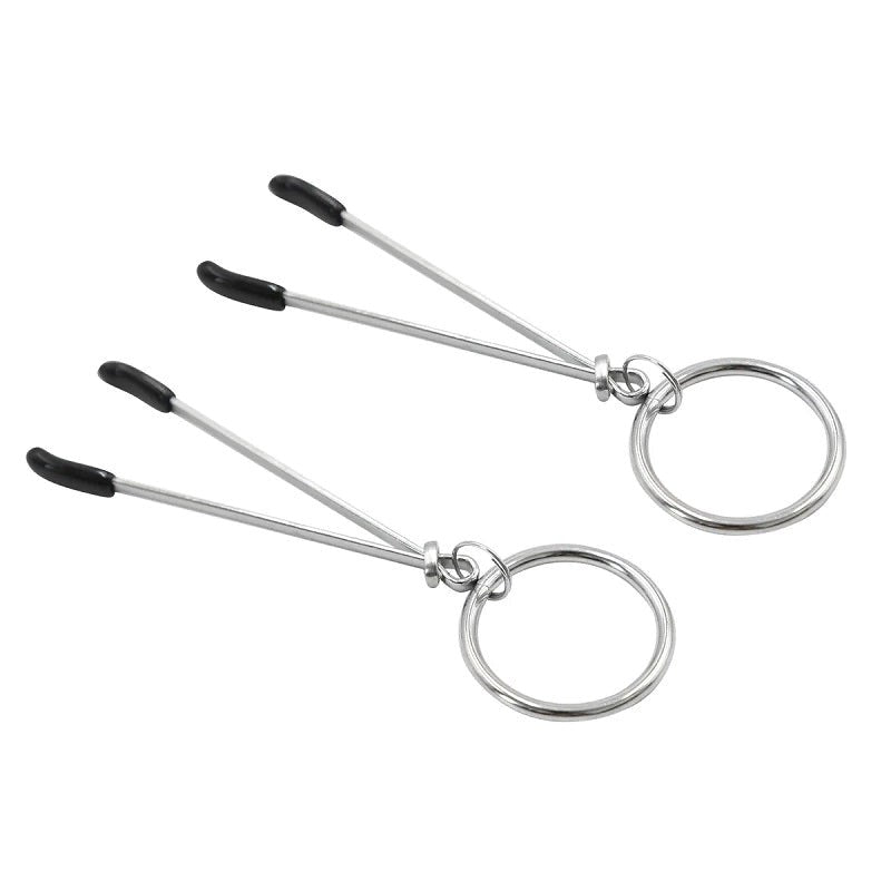Enhance your sensory play with adjustable Tweezer Nipple Clamps featuring a steel O-ring for added weights or chains. Perfect for unisex use, they offer versatile stimulation from light teasing to intense nipple torture.