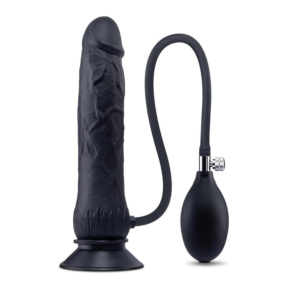 Xgen Size Up inflatable dildo pumps from 6 to 7 inches with realistic veining and suction cup base for hands-free play.