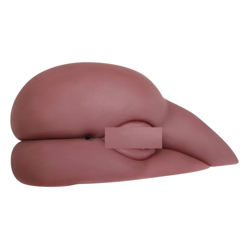 Dual-entry stroker with anatomically correct vaginal and anal openings. TPE construction with textured channels and side-grip handles for realistic sensation.
