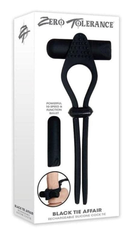 Evolved vibrating cock ring with adjustable silicone tie and 10-speed bullet. Dual stimulation for couples with textured nubs.