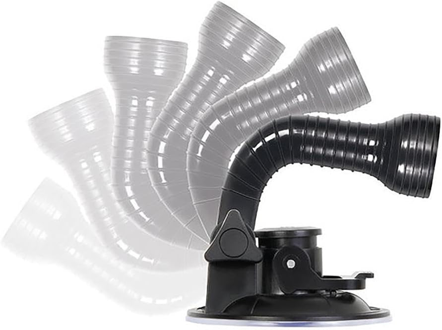 Adjustable goose-neck suction cup mount for hands-free stroker positioning. Industrial-strength grip on smooth surfaces.