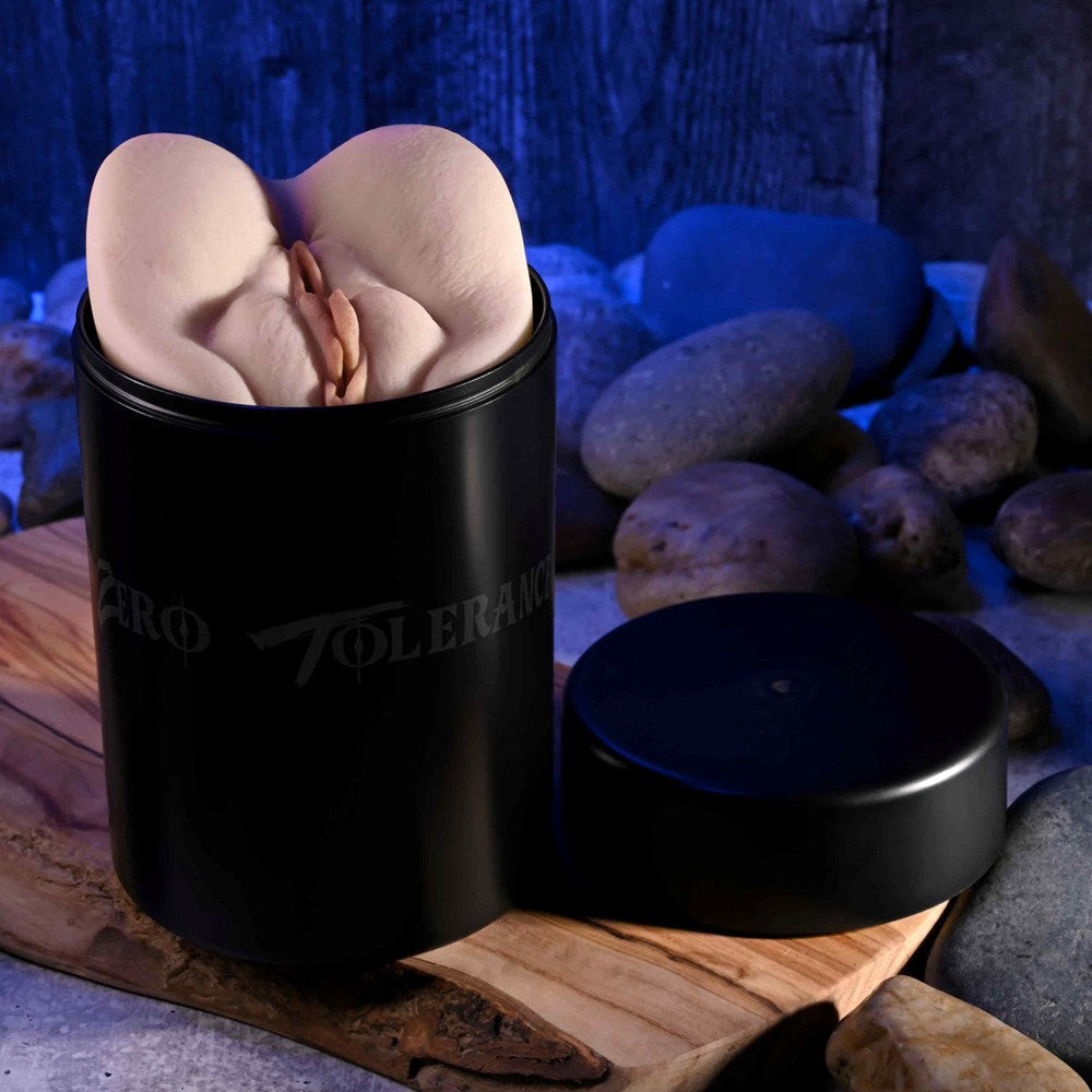 Dual-entry stroker with vaginal and anal channels. Includes 590g weight, textured sleeves, and Sasha Grey film download for immersive play.