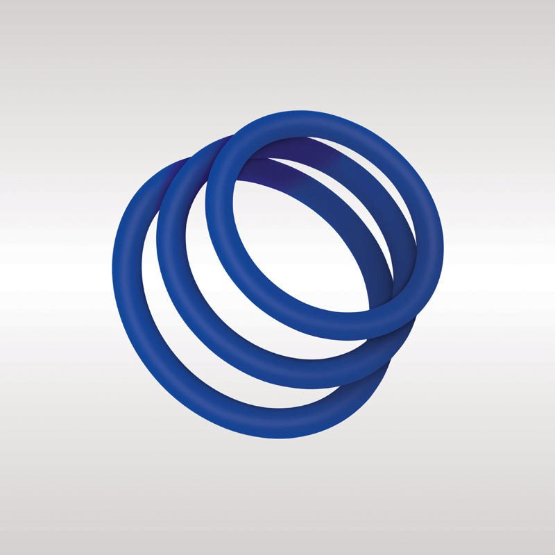 Three silicone cock rings in 41mm, 46mm, and 51mm sizes. Find your perfect fit with multiple intensity levels for enhanced sensation and support.